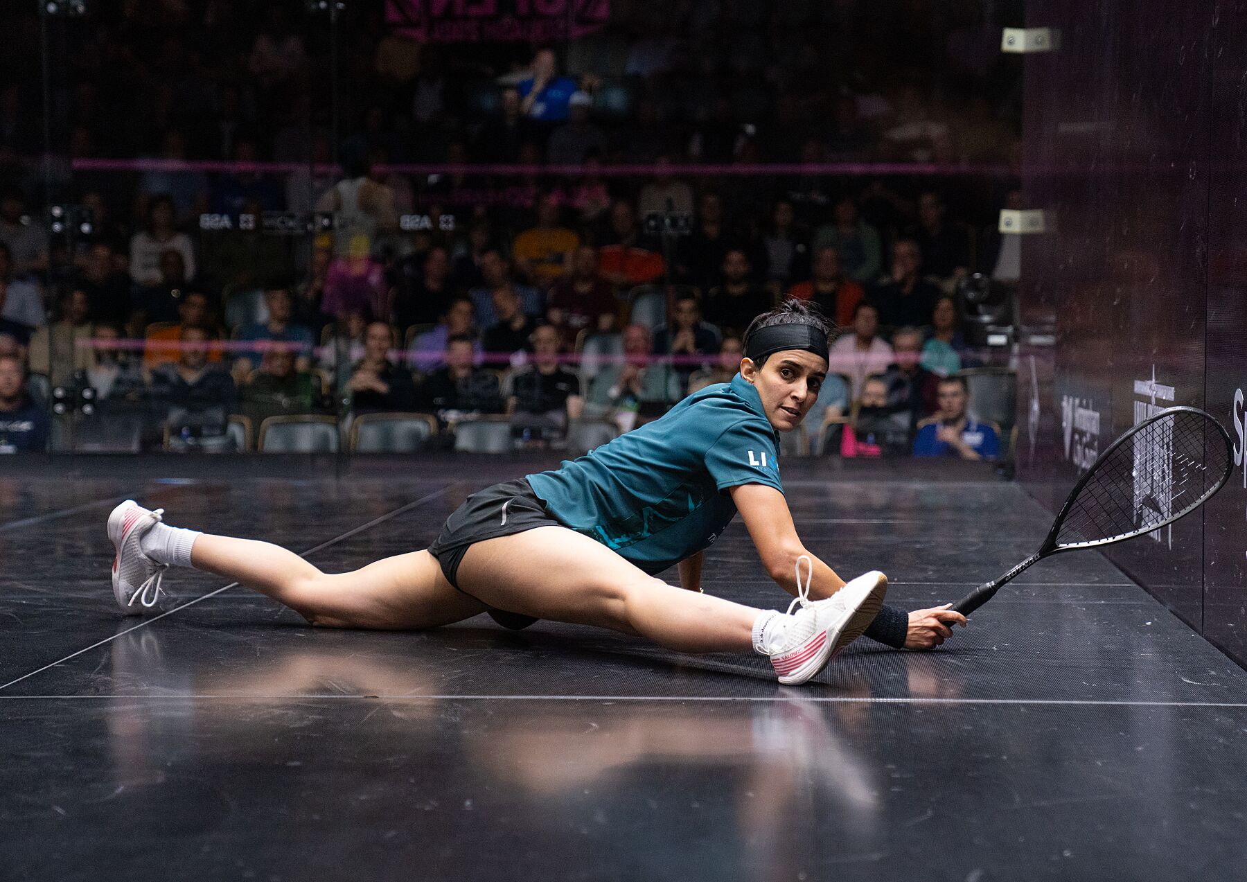 Enigmatic Egyptian Nour El Tayeb at full stretch during the 2024 British Open - which would be her last event as a professional player.